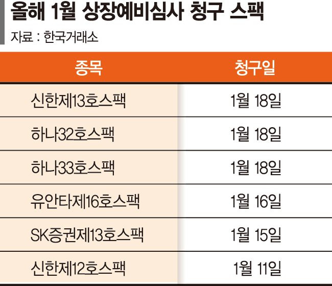 SK증권제11호스팩, 유안타제15호스팩, BNK제2호스팩 등은 이미 예비심사 승인을 받고 상장을 준비하고 있다. 중소형 스팩의 청약 및 코스닥 상장도 줄줄이 대기 중이다.