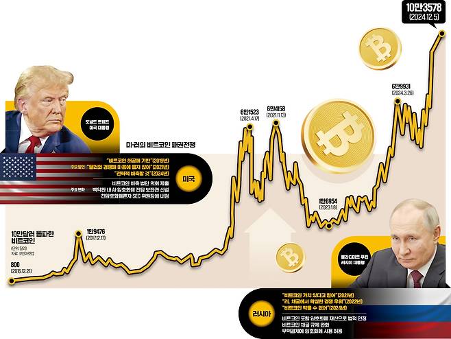 '비트코인 10만달러' 시대를 맞은 가운데 글로벌 패권 경쟁이 가상자산으로 번질지 주목된다.