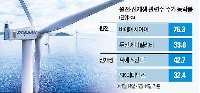 또 다른 원전주인 비에이치아이의 상승폭은 더 크다. 이날(4.61%)을 포함해 최근 한 달간 76.3% 폭등하며 시가총액 1조원을 눈앞에 뒀다. 14일 종가 기준 시총은 9840억원이다.