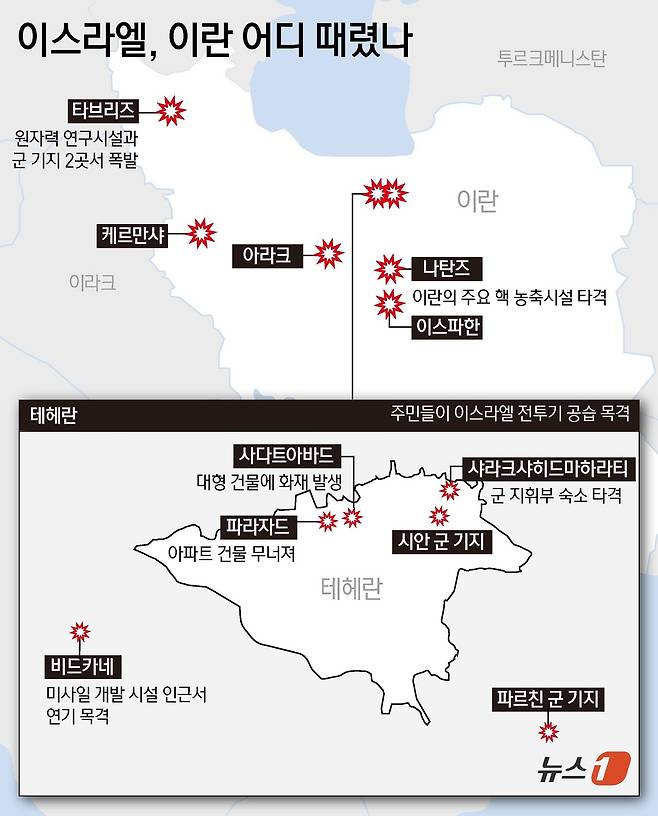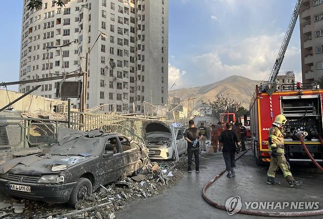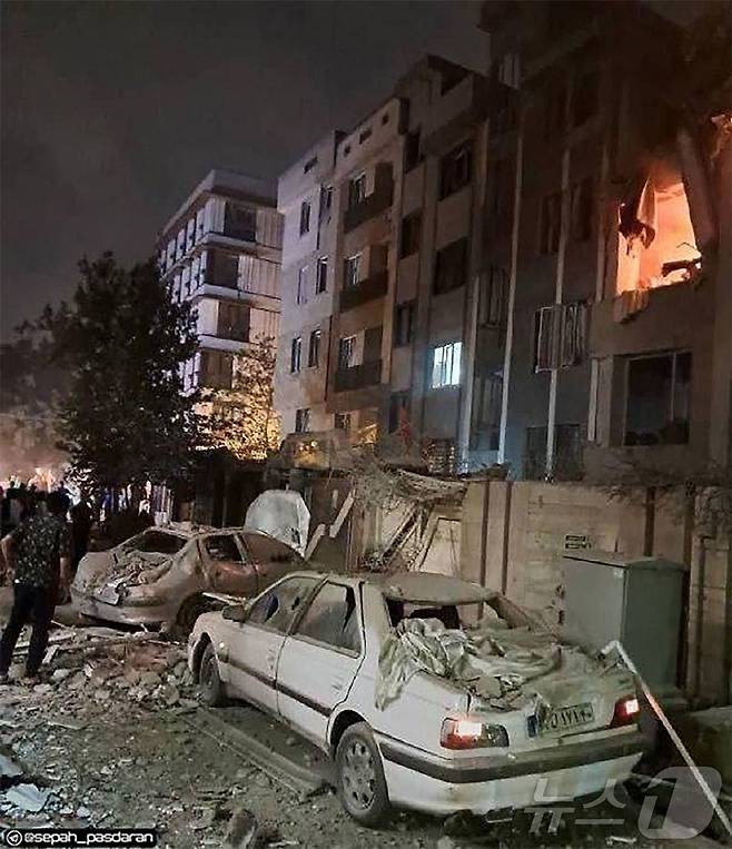 이스라엘이 13일(현지시간) 새벽, 이란 핵프로그램 및 군사 시설에 선제 타격을 벌이면서 이란 수도 테헤란에서 건물들과 차량들이 파손됐다. 2025.06.13