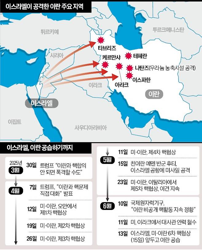 트럼프는 그간 이란에 대해 핵협상 체결을 압박했다. 그러면서 베냐민 네타냐후에겐 협상이 진행중이기 때문에 어떤한 공격도 자제할 것을 요청해왔다.