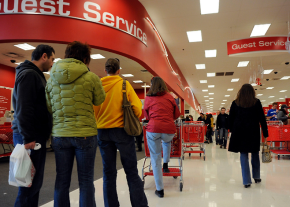 미국 소매점 타겟에서 고객들이 반품하려고 줄을 서 있다.