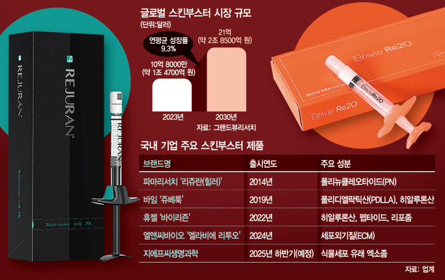 9일 시장조사업체 그랜드뷰리서치에 따르면 글로벌 스킨부스터 시장은 2023년 10억 8000만 달러(약 1조 4700억 원) 규모에서 2030년 21억 달러(약 2조 8500억 원)에 달할 것으로 전망된다.
