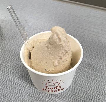 지바산즈 직영 아이스크림 가게에서 파는 흙마늘 아이스크림.