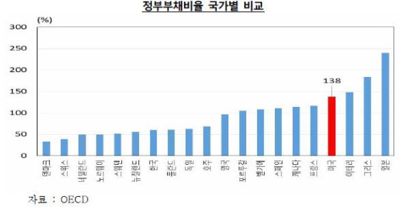 이제 갖 50%를 넘어간 국가부채비율, 일본의 1/4도 안돼고 있고만 왜 일본이상의 확장적 재정정책을 거부하는가 말입니다... 현재 3/4차외에 매년 미국으로 200억불 들어갈때마다...