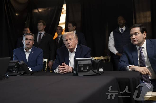 도널드 트럼프 미국 대통령이 3일(현지시간) 소셜미디어 '트루스소셜'에 게시한 사진. 플로리다 마러라고에서 마코 루비오 국무장관(사진 오른쪽), 존 랫클리프 미 중앙정보국(CIA) 국장 등과 함께 니콜라스 마두로 베네수엘라 대통령 체포 군사 작전을 실시간으로 지켜보고 있는 것으로 보인다.