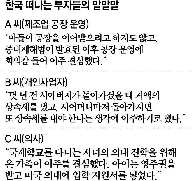 “한국 상속세율이 최고 50%에 이르는 점을 감안하면 출국세를 내더라도 세금 부담이 절반 가까이 줄어든다”며 “최근에도 한 중견 기업인이 싱가포르로 자산 5000억원 이전을 추진하고 있다”고 전했다.