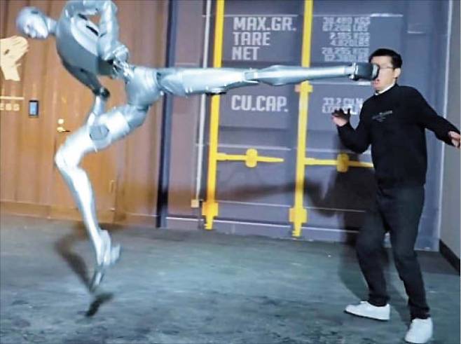 유니트리날아차기하는 中 유니트리 로봇중국 로봇 기업 유니트리의 휴머노이드 ‘H2’가 날아차기를 하는 모습. 유니트리는 중국 저장과기대·상하이대에서 학·석사를 취득한 왕싱싱(36)이 창업했다.
