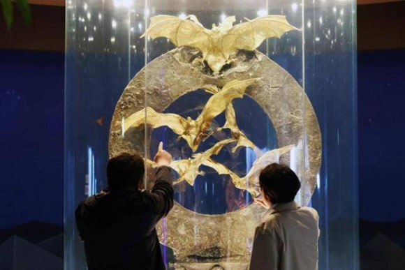 2023년 4월 19일 전남 함평군 황금박쥐생태전시장에 순금(24k) 162㎏으로 만들어진 황금박쥐상이 전시돼 있다.