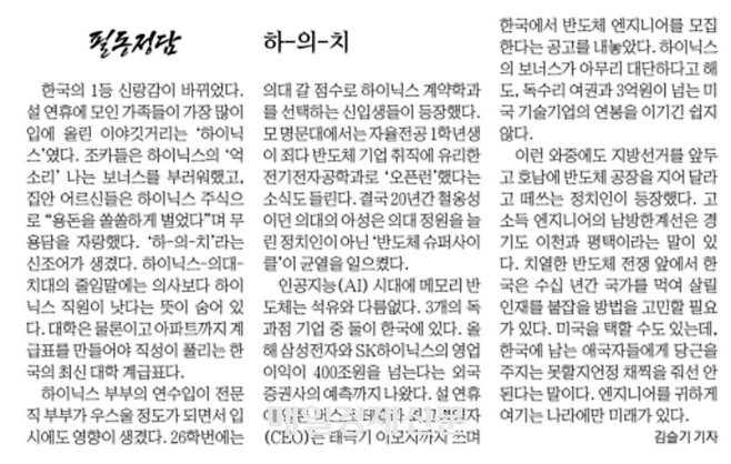 하이닉스가 의대와 치대 위에 있는 세상이 과연 찾아올까요.
