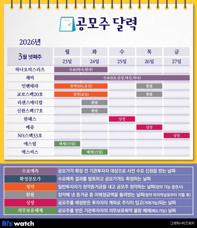 3월 넷째 주 공모주 일정을 알아볼게요. 이번 주는 공모와 상장, 락업 해제까지 주요 이벤트가 몰려 있어요.
