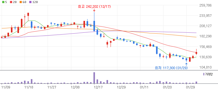 수급을 보면 개인만 순매수했다. 개인은 1506억원 가량의 주식을 순매수했으나, 기관과 외국인은 958억원 105억원 가량의 주식을 순매도 했다. 기관 중에서는 금융투자(-241억원), 연기금등(-172억원) 등이 매도 우위를 보였다.